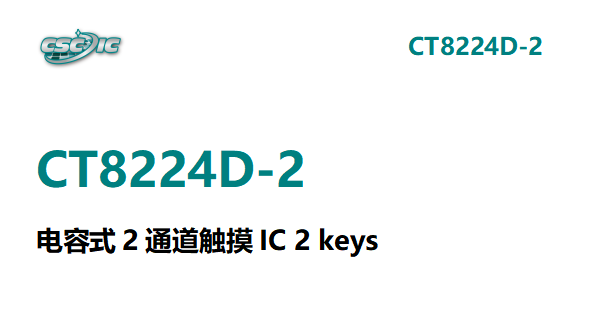 CT8224D-2 是一款電容式按鍵觸摸及接近感應開關控制芯片,替代傳統機械結構開關。產品采用CMOS 工藝制造,結構性能穩定,功耗低,通過引腳可配置多種輸出模式。芯片最多可支持 2 通道...