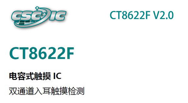 CT8622F 是一款電容式入耳檢測和觸摸二合一芯片。采用CMOS 工藝制造,內建穩壓和去抖動電路,高可靠性,專為取代光感和傳統按鍵開關而設計。超低功耗與寬工作電...