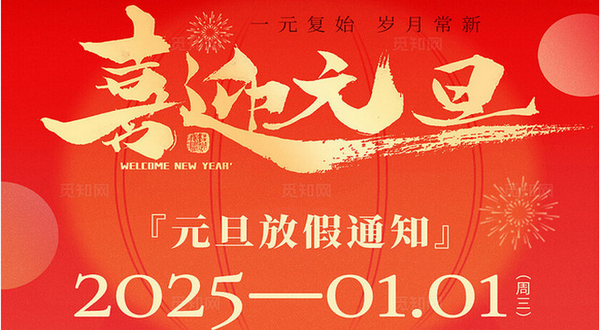各位客戶(hù)及同仁朋友,根據(jù)《國(guó)務(wù)院辦公廳關(guān)于2025年部分節(jié)假日安排的通知》及結(jié)合本公司的實(shí)際情況,現(xiàn)將 2025 年元旦放假安排通知如下: &...