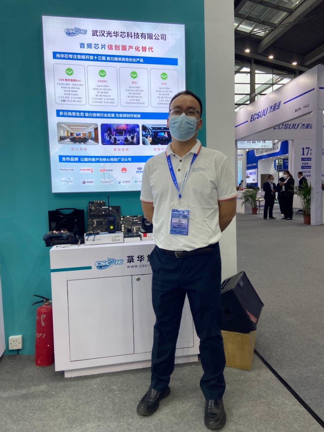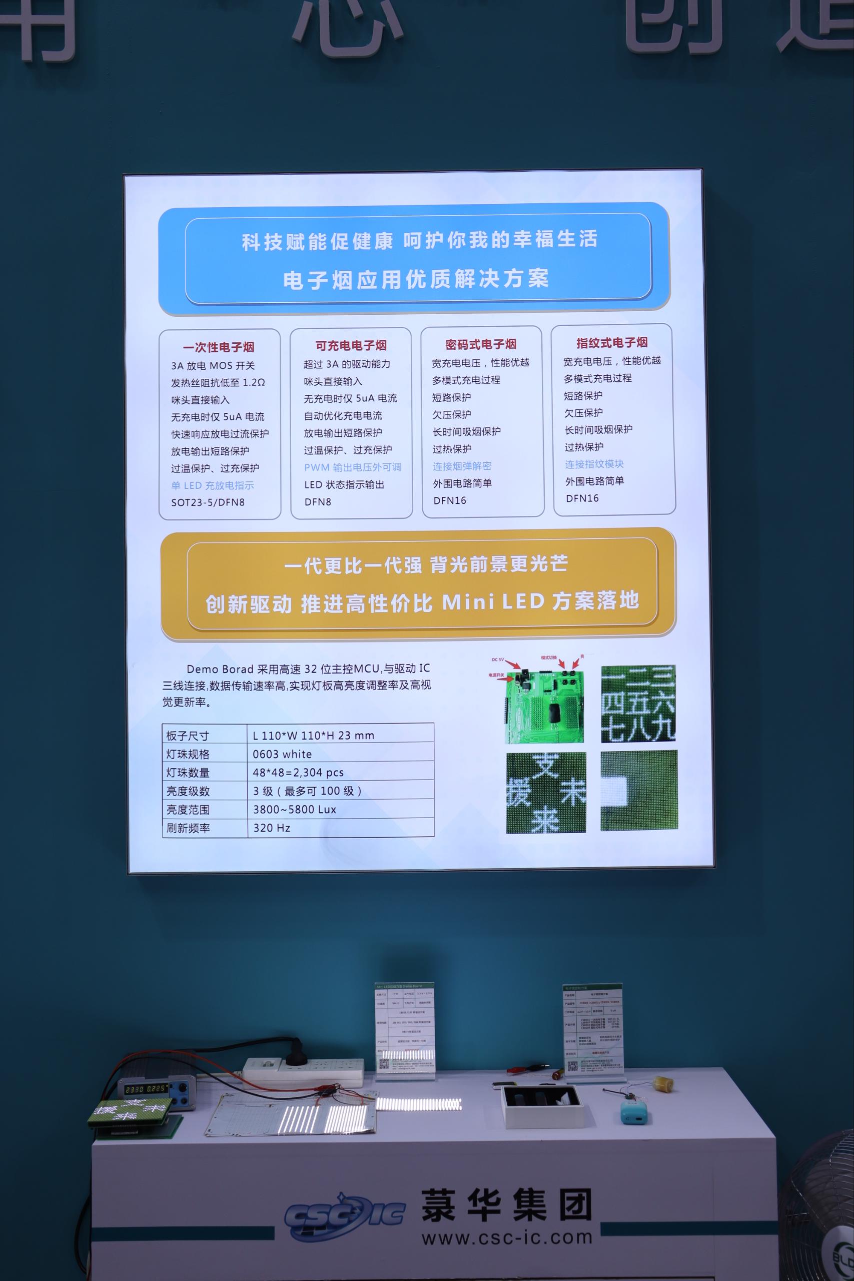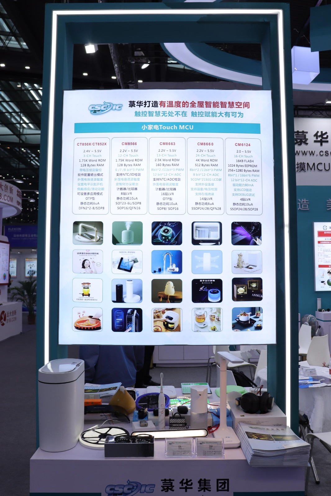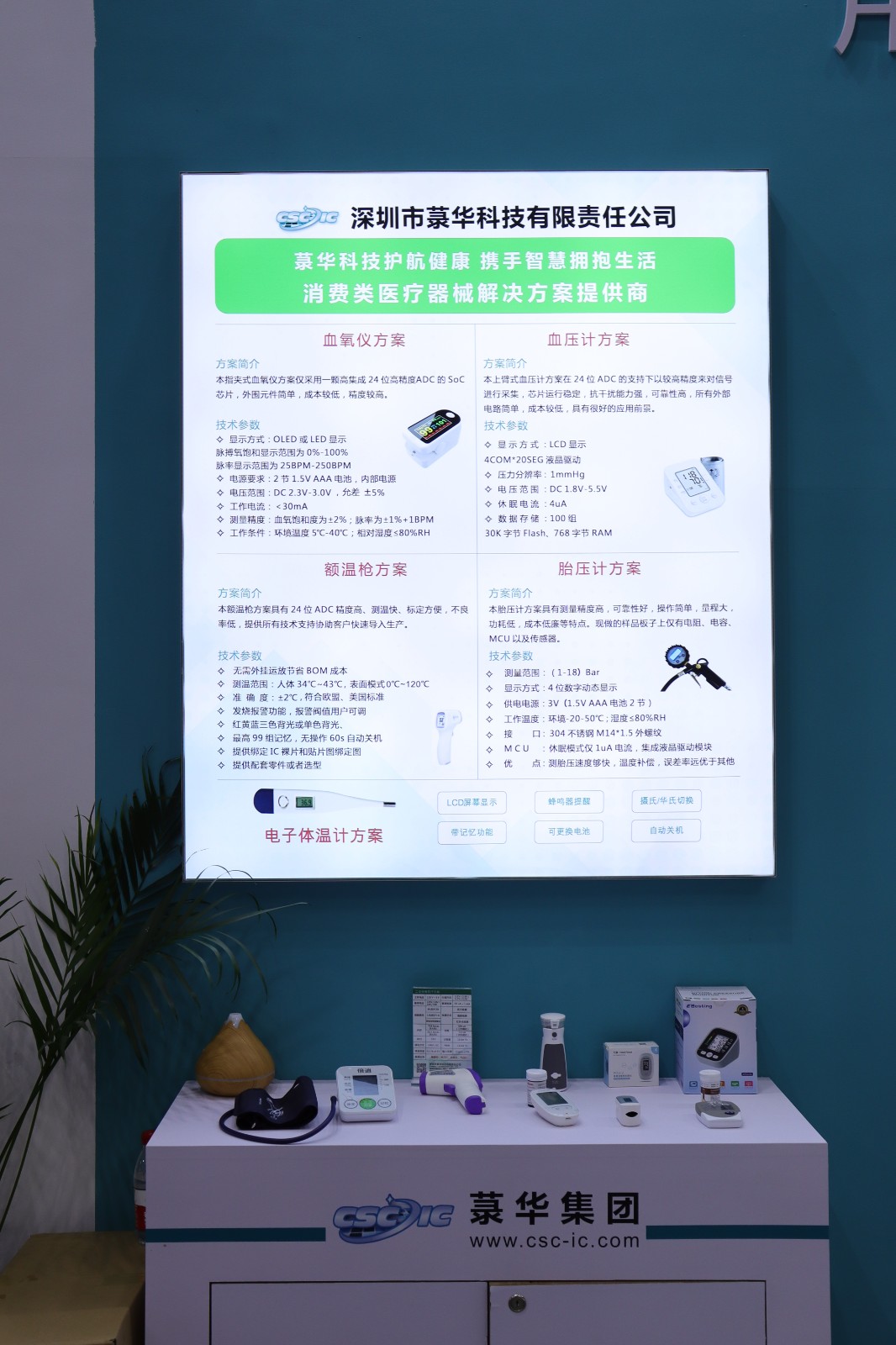 本次展會中,菉華集團展示了5大系列的產品,小家電Touch MCU、音頻芯片、Mini LED與電子煙、BLDC、消費類醫療器械方案,其中主推產品是電容式觸控芯片和音頻系列芯片。觸控系列芯片采用COMS工藝制造,內建穩壓和去抖電路,高可靠性、高靈敏、超低功耗,寬工作電壓,專為取代光感和傳統按鍵開關而設計,產品應用有空氣炸鍋、加濕器、凈化器、霧化器、車載支架、座位調節開關、空調/房車控制板、報警器、TWS耳機、手環、手表、各種智能燈具、智能門鎖、智能眼鏡、眼部按摩儀、電子秤等等。音頻系列芯片產品,包括USB數字音頻SoC、CODEC、ADC、DAC。廣泛應用于PC及周邊外置設備、安防、車載、商業、影像電機、電子數碼等領域。作為國內首批專業從事音頻芯片的設計企業,在音頻領域十余年的研發實力和市場耕耘已獲得眾多國內外客戶的認可。