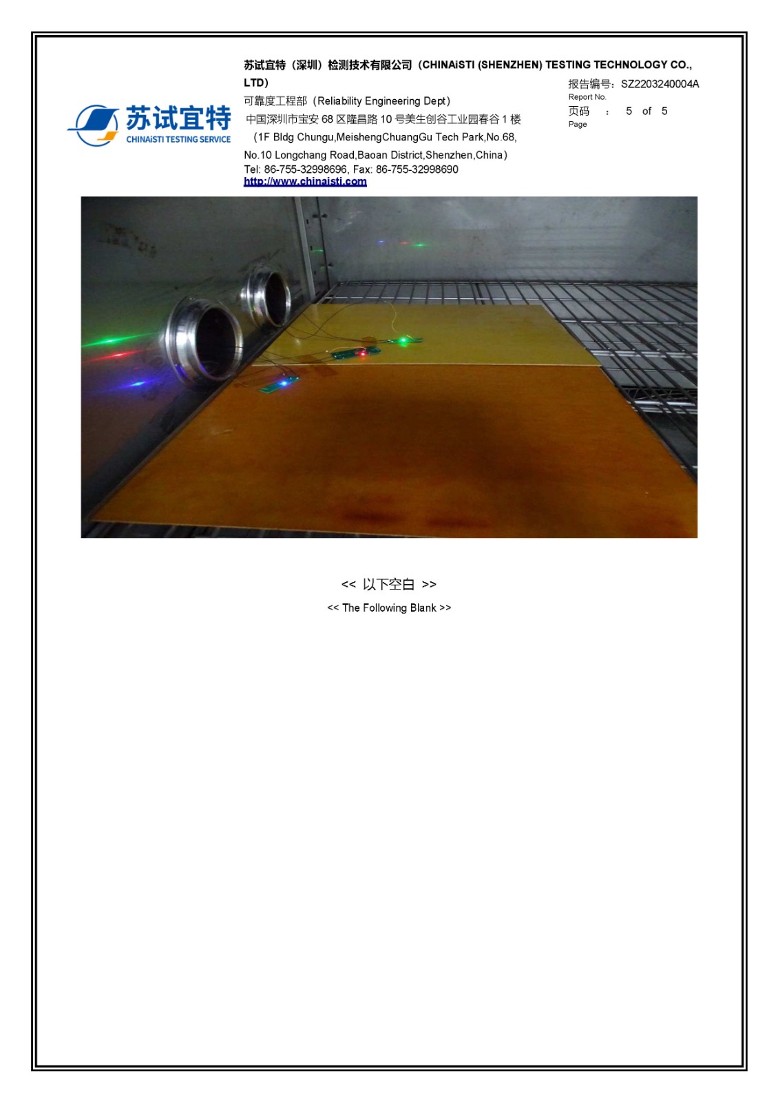 高低溫測試報告