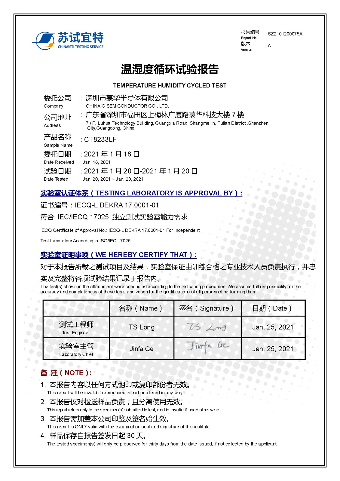 CT8233LF_溫濕度循環(huán)試驗報告